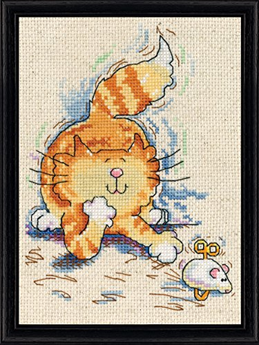 Design Works Crafts Cat and Mouse Counted Cross Stitch Kit, 5 by 7"
