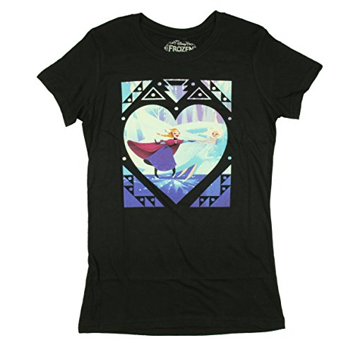 Disney's Frozen is the breakout title that captured the countries heart. Queen Elsa and Princess Anna will always be sisters first. This graphic t-shirt shows Anna and Elsa ice skating with a tribal heart border.