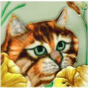 Calico Cat with Yellow Flowers Decorative Ceramic Wall Art Tile 4x4