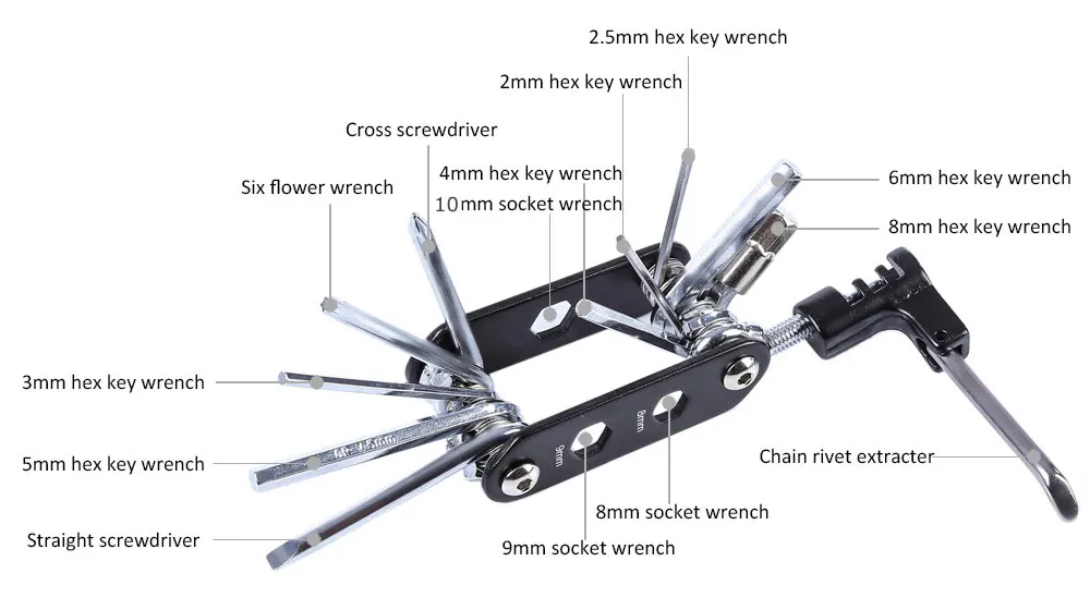 This is a practical repair tool kit for bicycles and mountain bikes. One repair tool kit can solve most problems you may encounter during cycling. If you are bicycle addicts or you want to improve operation ability of your kids」ャ our repair tool is your perfect helper! You deserve it!
