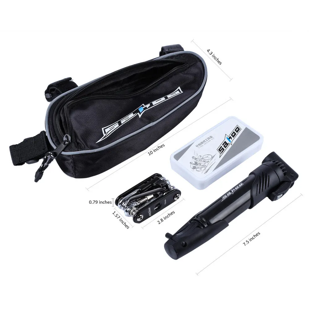 Package Contents: 1 x Bicycle Bag」ャ 1 x 15 in 1 Multifunctional Tool」ャ 1 x Tyre Repair Kit」ャ 1 x Tyre Pump