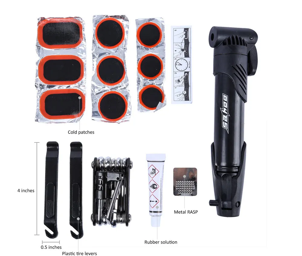 SAHOO 15 in 1 Bike Multifunction Tools Bicycle Cycling Multifunctional Repair Tools Tire Tyre Glue Patch Pump Kit with Bag