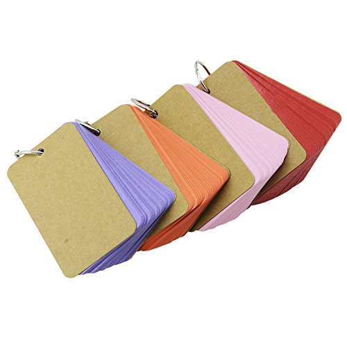 Rancco 200 Pcs Kraft Paper Flash Card w/ 4 Binder Rings, 95.5cm Blank Assorted Colors Study Cards/ Memo Scratch Note Pads/ Bookmark/ DIY Greeting Card/ Index Card