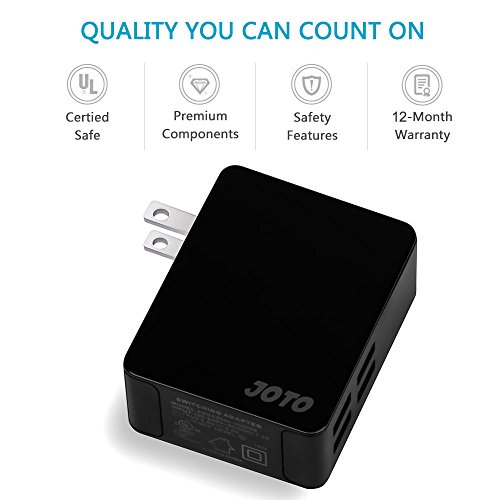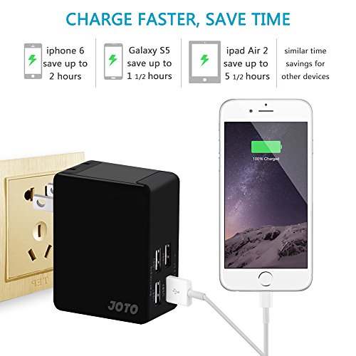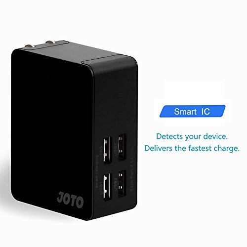 JOTO 4 Ports USB Wall Charger Power Adapter (25W/5A) with Smart IC Intelligent High Speed Charging for Apple, Android and all other USB Devices (4 outlets USB Travel Charger) (Black)