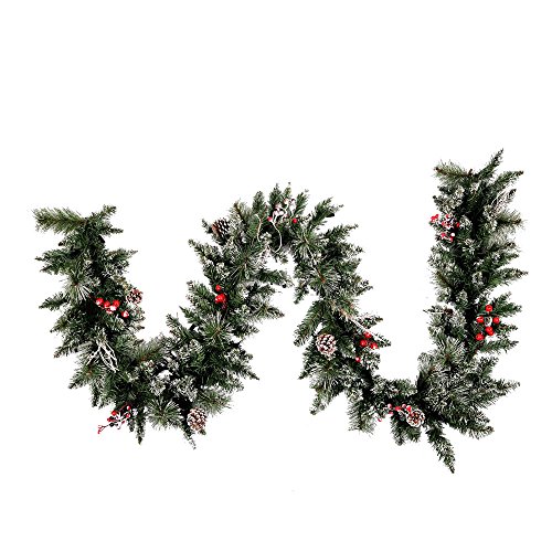 Vickerman Snow-Tipped Pine/Berry Garland-Unlit, 9-Feet, Frosted