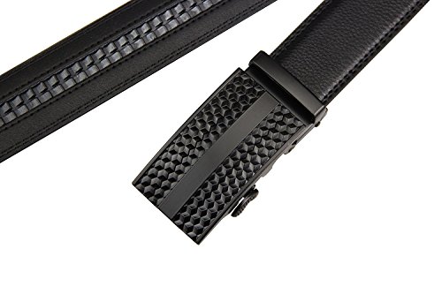 Belt Features: (a)The belt is sleek and clean, and provides a perfect fit for everyone. (b)plz buy one size larger than your waist,oversize for special demand (c)The tip of the belt inserts into the ratchet belt buckle, where a locking mechanism holds the belt in place from the back. (d)To remove the belt, just press the small metal lever on the bottom of the buckle, and the belt slides out of the buckle.