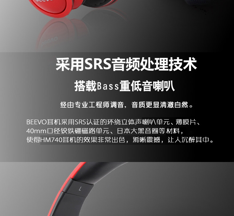 BEEVO/宾禾 BV-HM740手机通话耳机头戴式电脑耳麦带麦hifi高音质
