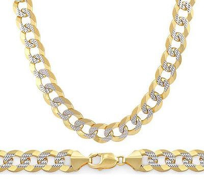 -. Title : Heavy 14k Gold Necklace Pave Cuban Curb Link Chain Multi Tone 8.2mm
