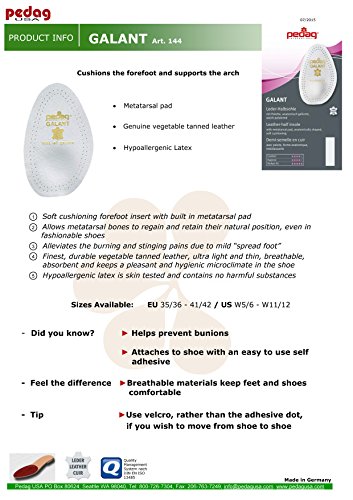 Pedag 144 Galant Optimally Cushioned and Self Adhesive Leather Forefoot and Metatarsal Pad, Tan, Women's 9/10