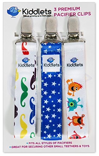 STYLISH AND TRENDY – Enhance his awesomeness by adding one of our cute and adorable clips to his outfit. There are three different double-sided designs to choose from and will hold up against an active baby boy. We designed our soother clips to be fun and playful using vibrant and bright colors which will make your baby boy look dapper, stylish and trendy.