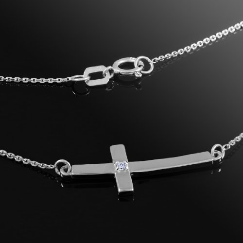 -. Binding : Jewelry -. Brand : Sideways Crosses -. Department : womens -. Feature : show your faith in Jesus Christ with this elegant curved sideways cross in stunning 14 karat white gold / embellished with a splendid solitary round cut diamond in pave setting; weighs an average of 2.00 grams / comes with rolo chain and free special gift packaging / made in the USA yet offered at factory-direct jewelry P.R.Ice / ships within 24 hours from the manufacturer directly to the customers themselves -. Label : Claddagh Gold -. Manufacturer : Claddagh Gold -. Model : CM650WH -. ProductGroup : Jewelry -. ProductTypeName : FASHIONNECKLACEBRACELETANKLET -. Publisher : Claddagh Gold -. Studio : Claddagh Gold -. Title : 14k White Gold Diamond Small Curved Pendant Sideways Cross Necklace