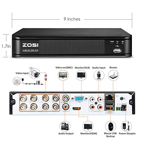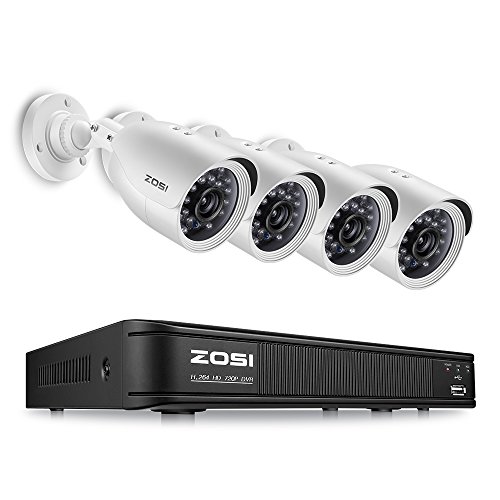 ZOSI 8-Channel 720P CCTV Security Camera System ,1080N HD-TVI DVR Recorder and (4)1.0MP 720P(1280TVL) Night Vision Indoor/Outdoor Weatherproof Surveillance Bullet Cameras