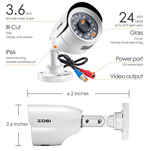 (2).720P HD-TVI Video - Get a sharp and crisp image day or night with the camera's automatic IR-cut filter. Up to 65ft night vision.
