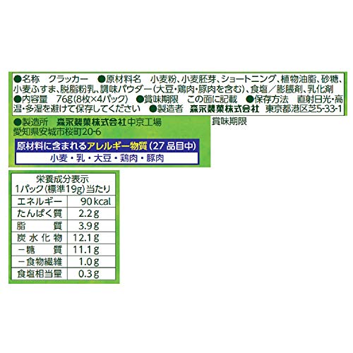 原材料:小麦粉、小麦胚芽、ショートニング、植物油脂、砂糖、小麦ふすま、脱脂粉乳、調味パウダー(大豆・鶏肉・豚肉を含む)、食塩/膨脹剤、乳化剤