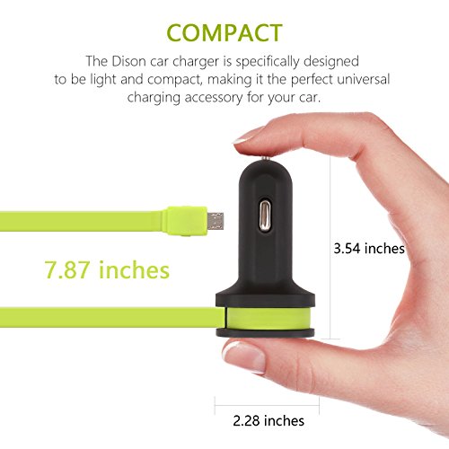 ✔Super Compact and Portable: 3.54*2.28 inches. Introducing car charger with built-in micro connector and two extra USB port, a unique and exquisitely designed car charger with hiding and twined flat cable, built with portability in mind. The compact size and the lightweight allow you to travel with it or carry it around with ease. Even you forget to bring the charging cables