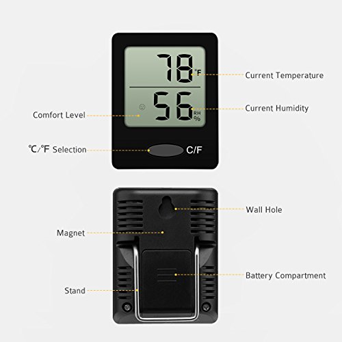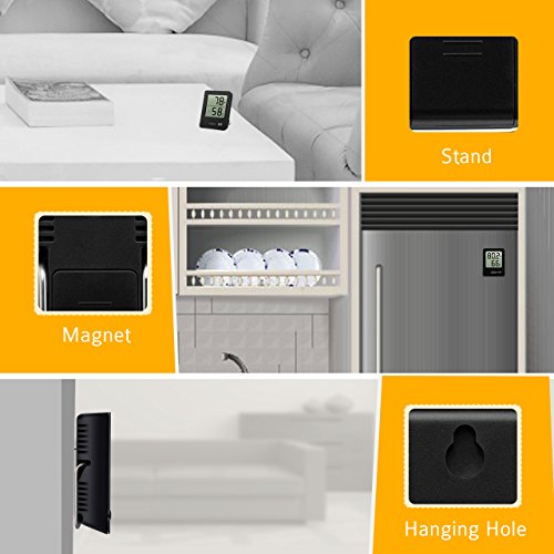 VARIOUS APPLICATIONS & MOUNTING OPTIONS: Great for monitoring indoor and outdoor humidity and temperature, available for table standing, wall hanging and magnet attaching design, convenient mounting feature for every type of room