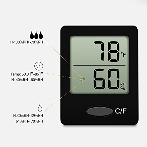HIGH RELIABILITY & ACCURACY: Fast response that measures every 10 seconds to provide updated and accurate readings, wide measuring range that measures temperature from 32.0℉ to 122.0℉(0.0℃~50.0℃), measures humidity from 20% to 95%