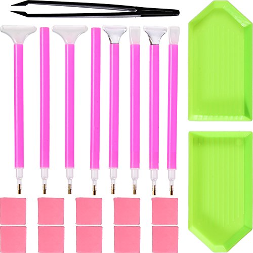 - Package includes: 8 x diamond sticky pen in 4 different types, 10 x glue, 2 x plastic plates and 1 x tweezers, a complete set of DIY diamond painting tools, convenient for you craft job