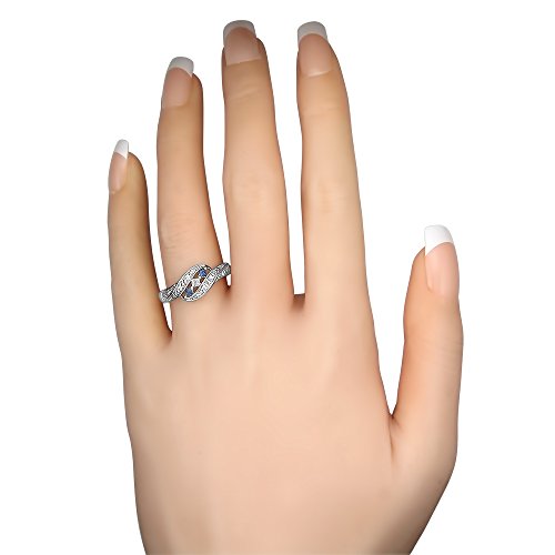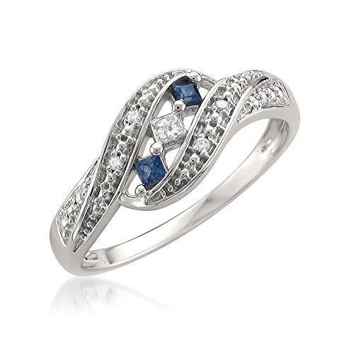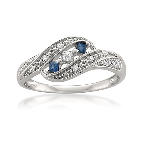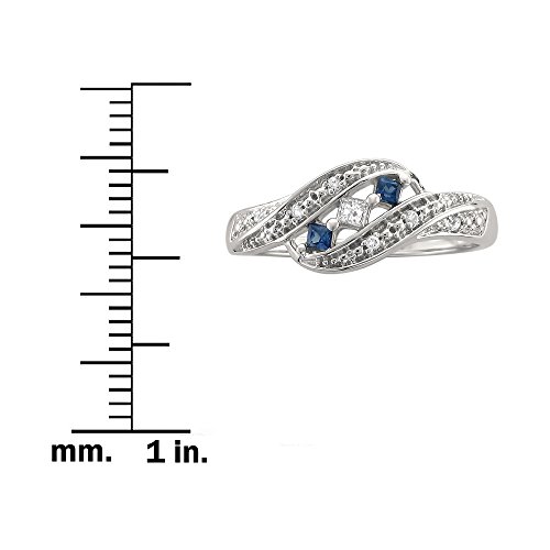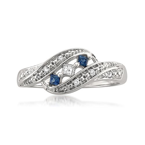 -. Title : 14k White Gold P.R.Incess-cut & Round Diamond & Blue Sapphire Fashion Band Ring (1/5 cttw, H-I, I1-I2)
