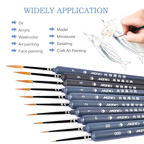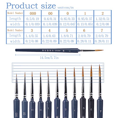 - DETAIL PAINT BRUSH SET - Comes with 10 different detail paint brushes in size 000, 00, 0, 1, 2, 3, 4, 5, 6, 7. Meet you different needs.