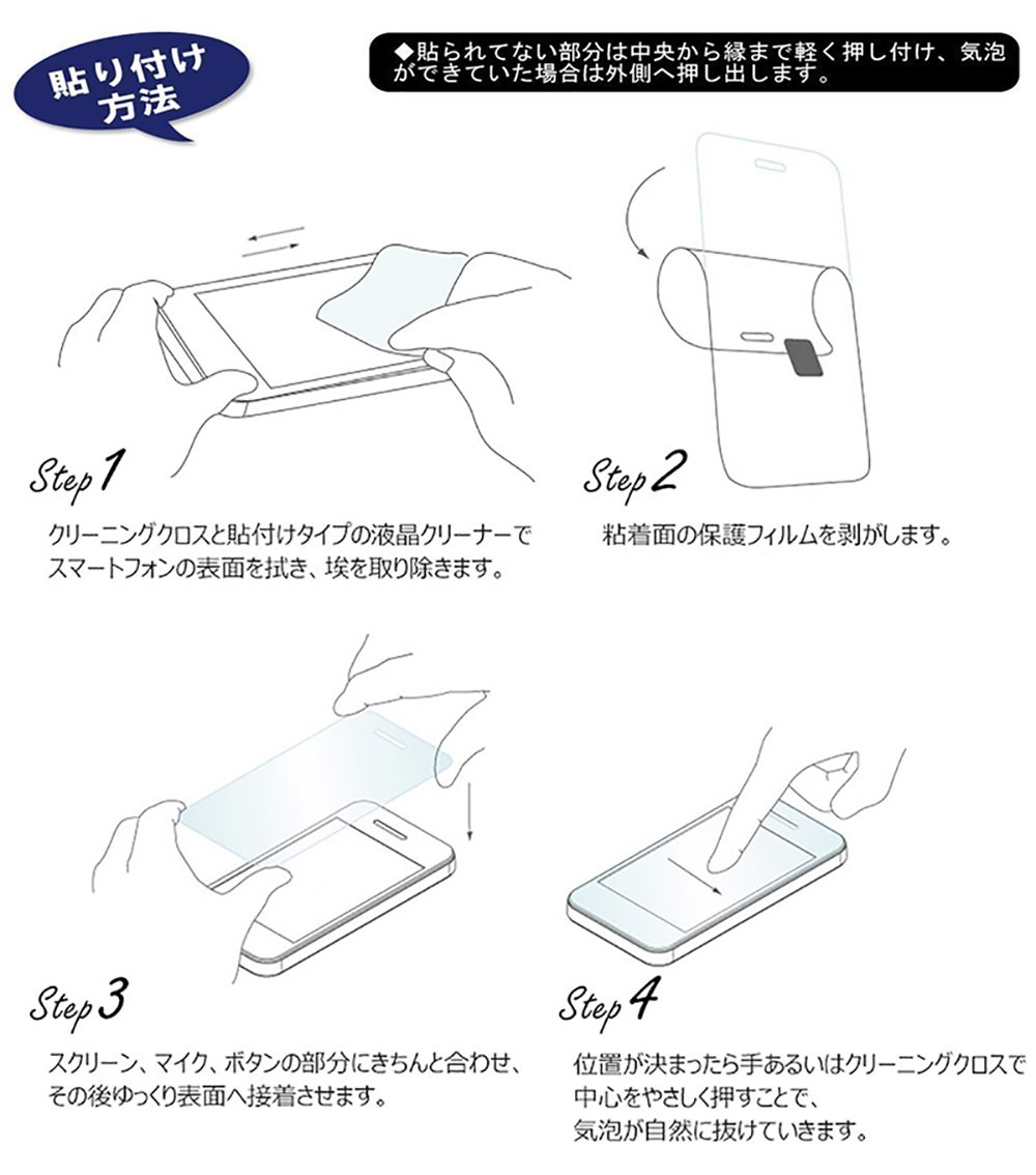 It is easy to stick with a self-adsorbing silicon film applied on the adhesive surface and does not contain air bubbles.