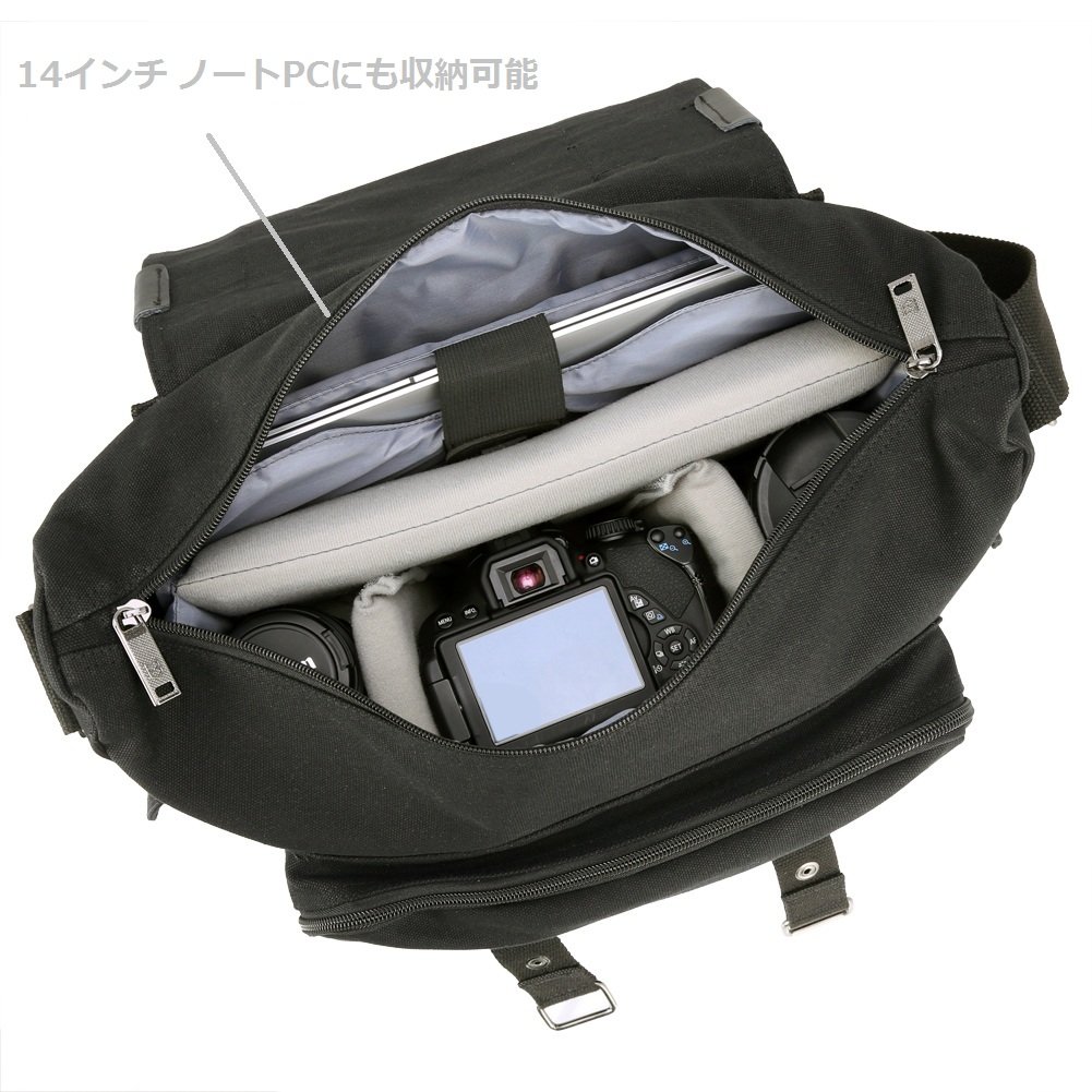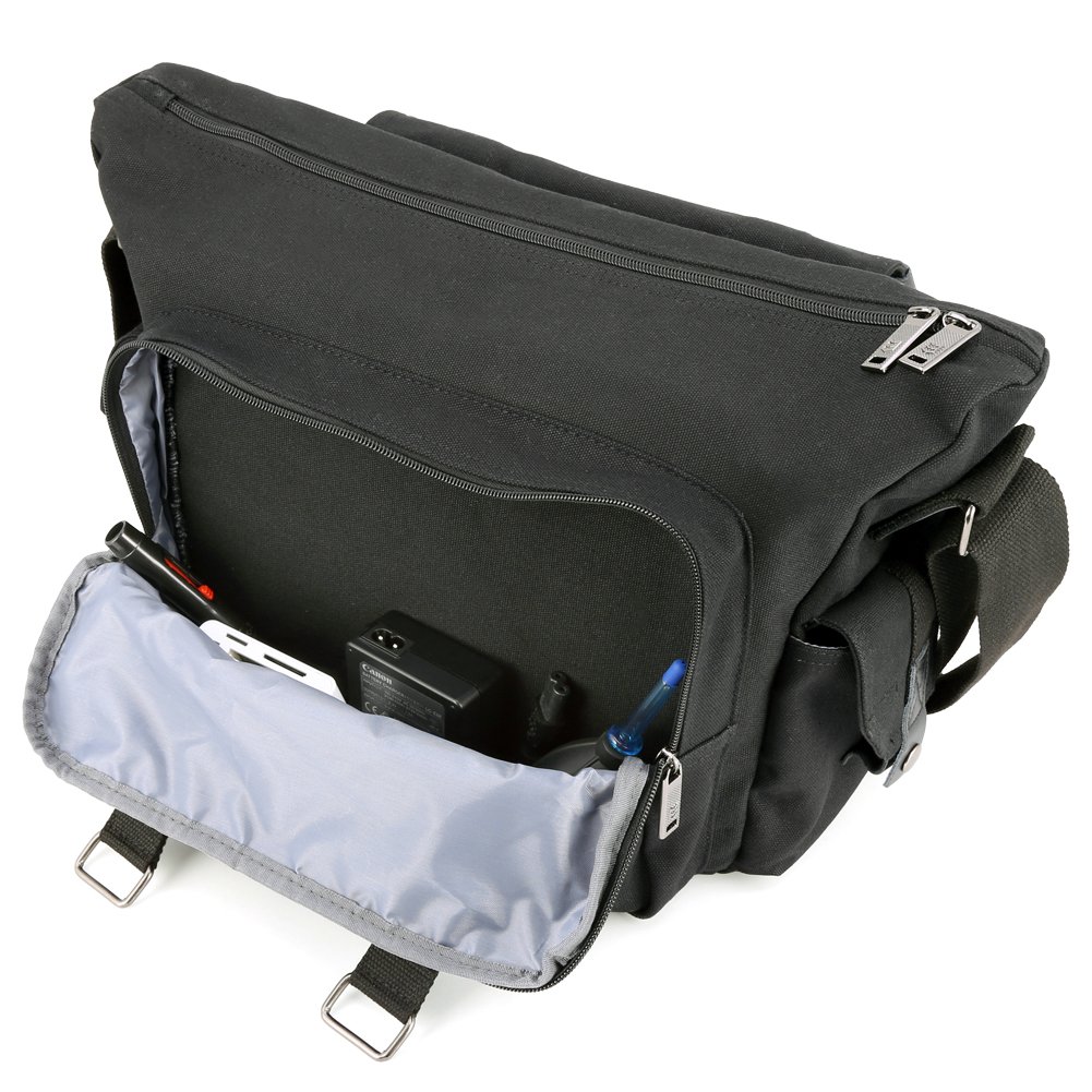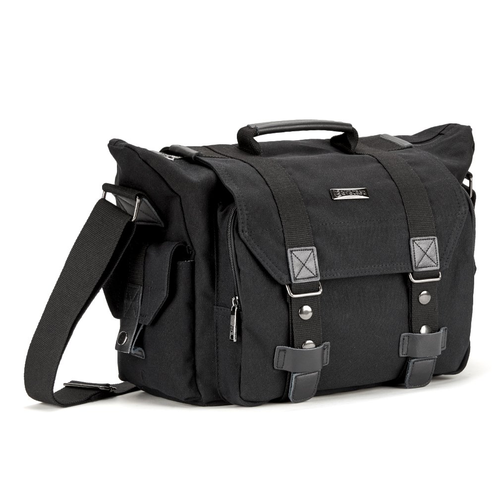 SLR Camera Bag Evecase Large Canvas Messenger SLR / DSLR Camera Shoulder Bag with Rain Cover for Digital Cameras, Laptops and other Accessories - Black