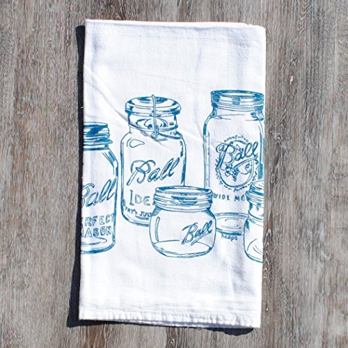 -. Title : Tea Towel Flour Sack Cotton Kitchen Table Linens Screen P.R.Inted Teal Mason Jars