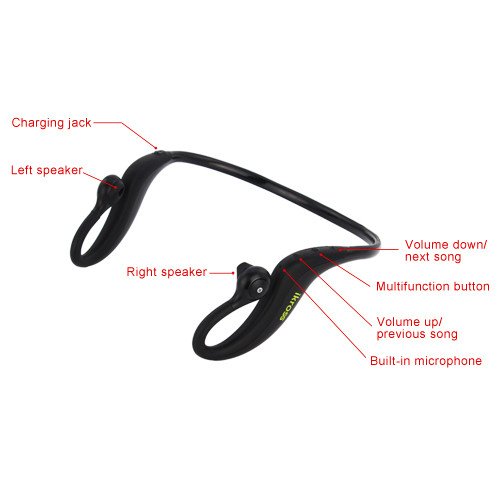 - Feature : iKross IKBLU064 High Quality Bluetooth Headphones with Water Resistant Capabilities / Good for sweat, the rain, or even the shower but DO NOT submerge or expose to high humidity/moisture / Lasts approx 7 hours on one charge - USB charging cable included / One size fits all - Sport design fits comfortably around the back of your head / Includes built-in microphone for handsfree phone calls