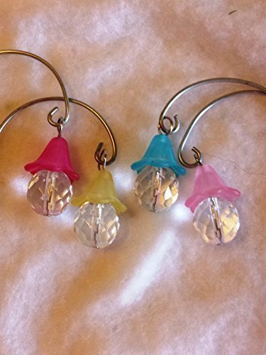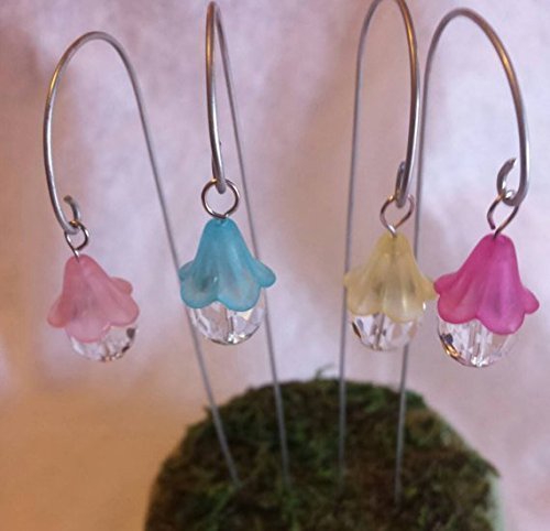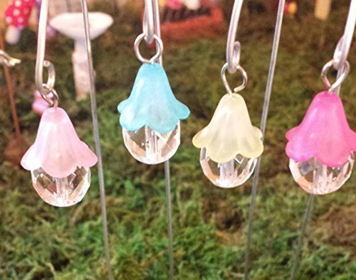 Product Description Lanterns for fairy garden, terrarium or dollhouse. Pink, light pink, yellow and blue. Set of 4 multicolored hanging lanterns on silver shepherds hooks. The Shepherd's hooks measure 7-7 1/ 2 inches tall. These are made from beads and do not light up. 0
