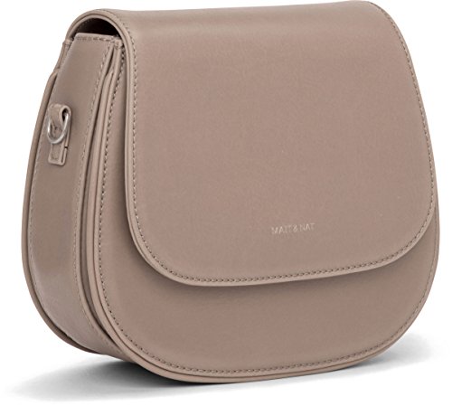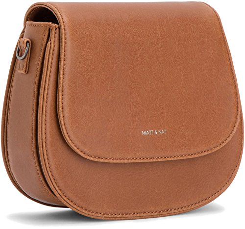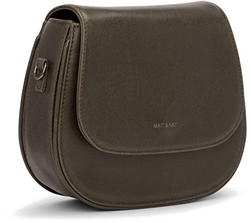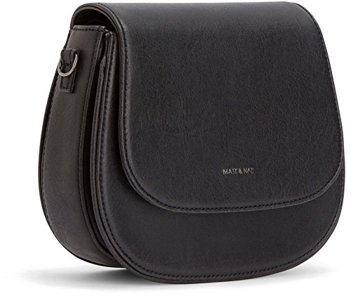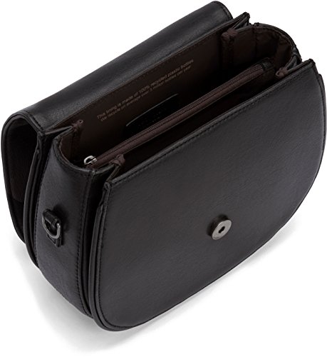 Saddle bag with adjustable and removable strap. Flap with magnetic snap closure and back slit pocket. Three interior compartments, center with zipper closure. INTERIOR: smartphone pocket, logo-embossed Dwell tag. 100% recycled nylon lining.