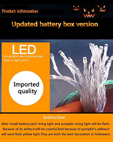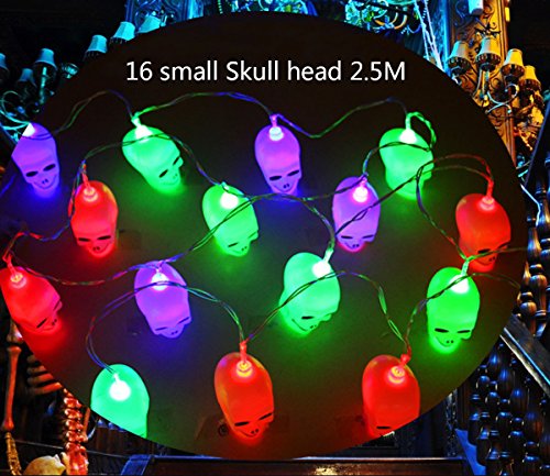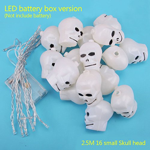 -. Title : LED Skull String Lights 8.2FT 16pcs LED Flash Lights Indoor/Outdoor Decoration Lantern for Halloween Christmas Parties Battery Operated