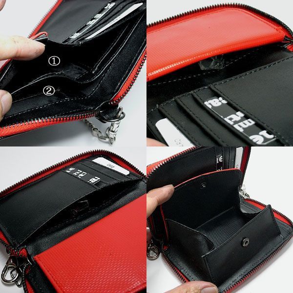 ★丈夫なターポリン素材 ファスナー式の二つ折り★ 【商品詳細】 カードポケットは、お札を入れる2層のスペースにも付いていて、合計8ヵ所あります。 細めのボールチェーンは取り外しOK! ■サイズ:縦10cm 横13.5cm 幅2cm ■ボールチェーン長さ:約41cm(本体から取り外しOK) ■仕様:札入れ2、オープンタイプ小銭入れ×1、カード入れ×8、ポケット×2、外側ファスナーポケット×1 ■素材:合皮、ポリエステル ■色合いは2種類です。 ・レッド×ブラック×ホワイト(内側はブラック×レッド) ・ブルー×ブラック×ホワイト(内側はブラック×ブルー) 《お届け方法に関して》 ・定形外郵便で送料無料となります。 ・お届け先の郵便受け投函で配達は完了となります。 ・お届け日時の指定はできません。 ・定形外郵便で代引きもできます。代引きもお届け日時の指定はお受けできません。 ( お試し 初回限定 10代 30代 40代 20代 50代 人気 激安 通販 子供 ブラック ランキング ロング ファッション 特価 軽量 安い おすすめ スリム メール便 おしゃれ セール 中学生 高校生 安い 人気 財布 )