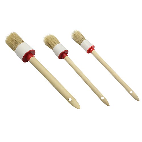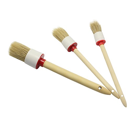 Dreamtop Natural Boar Hair Detail Brush Set for Wheels, Interior, Leather, Trim (Pack of 3)