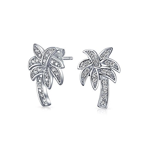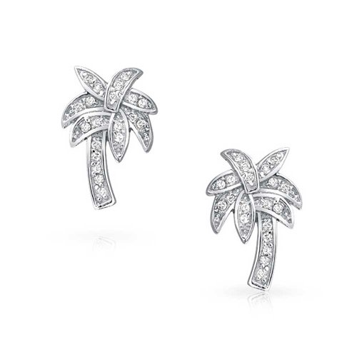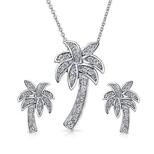 -. Title : Bling Jewelry Sterling Silver Pave CZ Palm Tree Pendant and Earrings Set