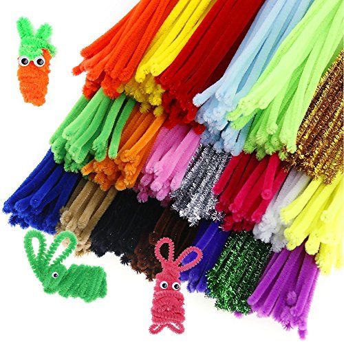 Caydo 500 Pieces Chenille Stems Pipe Cleaners 6 mm x 12 Inch, Smooth Processing at Both Ends, Safe and Humanized Design for DIY Art Craft