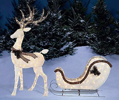-. Title : Light-Up Buck Deer & Sleigh, 2-Piece Set Christmas Yard Decoration