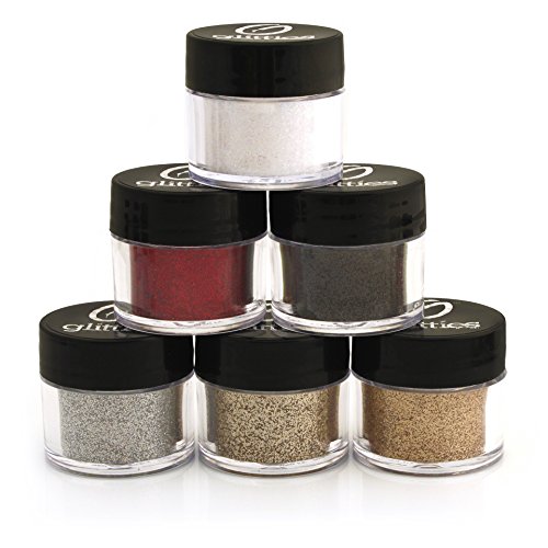 This kit includes 6 professional cosmetic grade glitter powders that come in a 10 gram jar with .25 ounce of amazing sparkle.