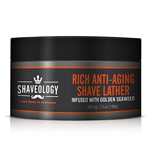 -. Feature : The Shaveology Shave Lather is a revolutionary breakthrough in men's skin care. By combining the finest ingredients designed to nourish the skin during the shaving process we have also added a new element of anti-aging to our line. By infusing Golden Seaweed to our formulation not only have we made sure the skin is hydrated, but that the skin is protected throughout the day from the free radicals that negatively impact our skin. / Amazingly slick water activated shave lather designed to reduce nicks and razor irritation / Infused with Golden Seaweed. A natural ingredient clinically studied for its anti-aging properties and known to leave your skin astonishingly soft and smooth / Highly concentrated 120 plus day supply. One puck can outlast several cans of gels or foam / Manufactured in the USA - BACKED BY OUR 90 DAY LOVE YOUR SHAVE GUARANTEE - If for whatever reason you (or the person receiving the kit as a gift) are not 100% SATISFIED then we will refund your money back no questions asked. That is how confident we are that this really will be the best shave of your life.