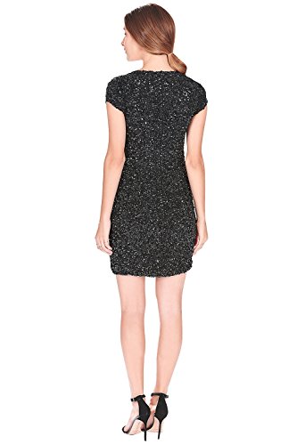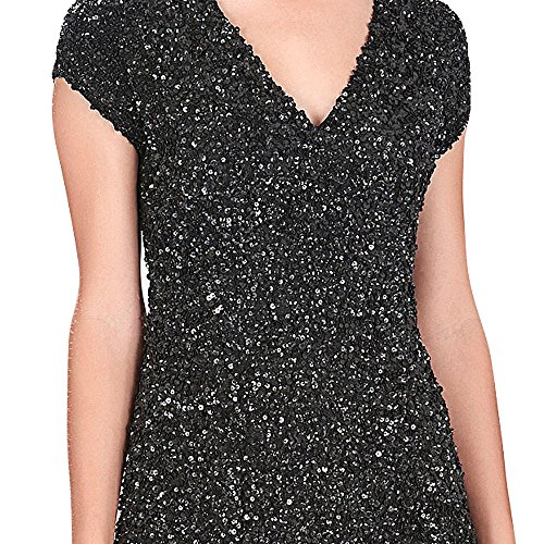 Nighttime glamour that glitters, this allover sequin dress highlights your figure in a flattering sheath silhouette. V-front, cap sleeves, hidden back zip closure.