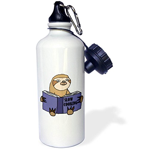 -. Title : 3dRose All Smiles Art Sports and Hobbies - Funny Cute Sloth Reading Slow Cooking Book - 21 oz Sports Water Bottle (wb_255673_1)