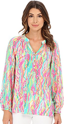 Floral peasant blouse in silk featuring smocking at collar and V-neckline with three-button placket Elastic wrist cuffs Brand : Lilly Pulitzer Item model num : 41773-662LF7-662 MPN(PartNumber) : 41773-662LF7-662 EAN : 0889069014834