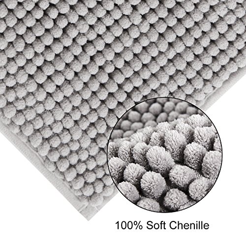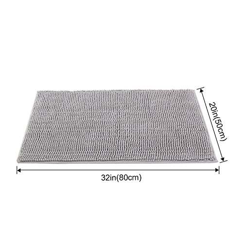Norcho 32"x20" Soft Bath Mat Non Slip Microfiber Shaggy Chenille Bath Rugs Bathroom Shower Mats Grey