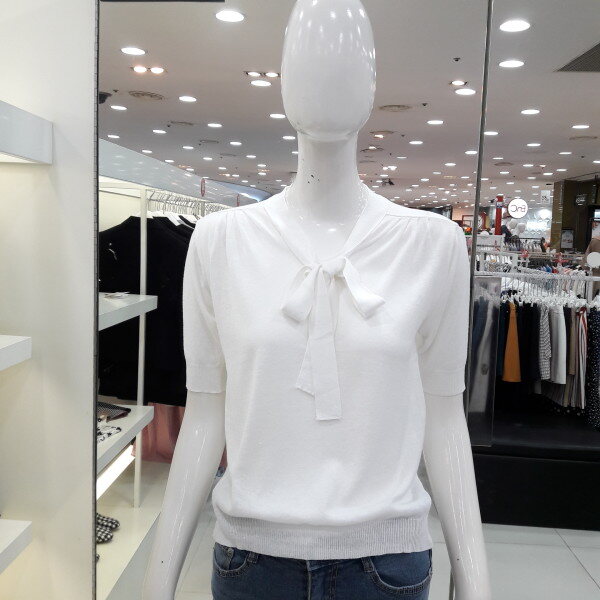 18년 가을 브이넥 리본 슬림 니트입니다 슬랙스 스커트에 잘 어울리며 반팔 니트로 지긍부터 착용가능하며 자켓안에 이너로 입기도 좋은 아이템입니다