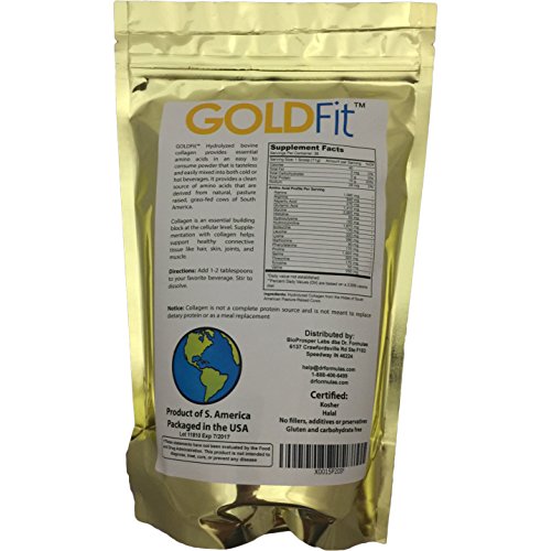 Dr. Formulas' Goldfit Hydrolyzed Collagen Peptides from Grass Fed S American Cows - Tasteless, Low Carbohydrate, Kosher/Halal Protein