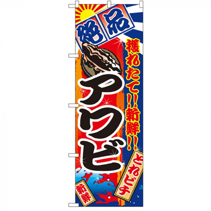 「のぼり」を使えば目を引くこと間違いなしです!! 生産国:日本 素材・材質:ポリエステル 商品サイズ:W600×H1800mm ※サプライヤー直送品 ご注文後5~6営業日後の出荷となります【商品名】Nのぼり 2674 アワビ