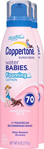Coppertone WaterBABIES Foaming Lotion SPF 70+ is a foaming sunscreen lotion that is gentle and non-irritating. Hypoallergenic & Dermatologist-tested. Photostable, broad spectrum UVA/UVB protection. Water resistant (80 minutes).