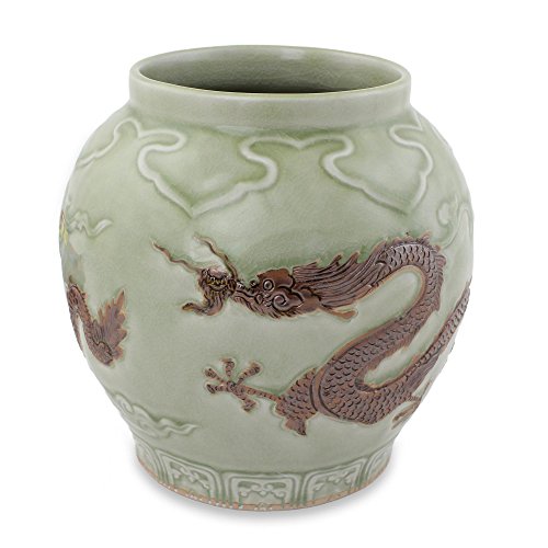 NOVICA 'Dragon Rising' Celadon Ceramic Vase
