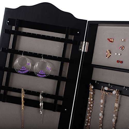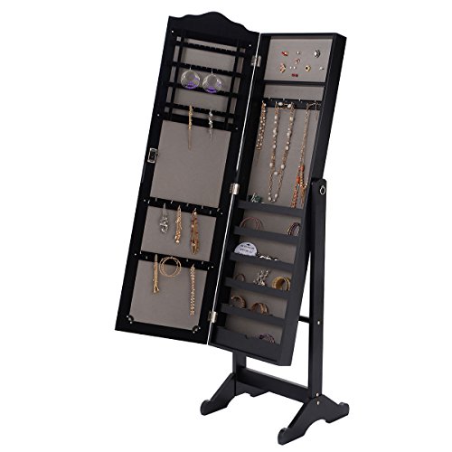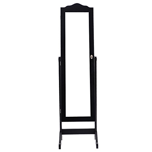 -. Title : Lockable Mirrored Jewelry Cabinet Armoire Mirror Organizer Storage Box w/ Stand