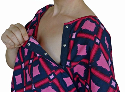 Pregnancy is not an illness, so why look like a hospital patient! Look Pretty on your Special Day. You deserve to culminate your pregnancy journey in high style! Feminine semi-V-neck unsnaps down to expose the chest for examination or when it's time to nurse baby. Convenient Side Pockets to keep important things close to you. (Think breath mints, headband, cell phone, etc)