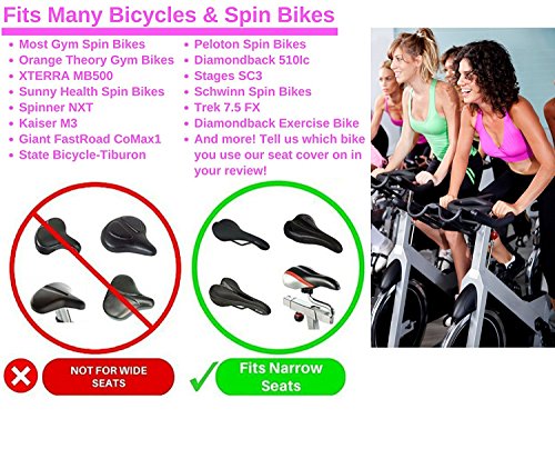DESIGNED FOR INDOOR SPINNING & OUTDOOR CYCLING - Most of our customers use our seat cover at Spin Class, but it can be used both for indoor spinning and outdoor cycling. Please measure carefully - the Seat Cover Cushion is about 10.5 inches Long & 7 inches Wide. Will NOT FIT WIDE SEATS.